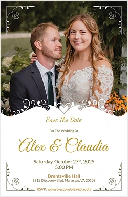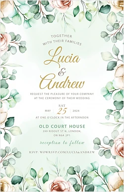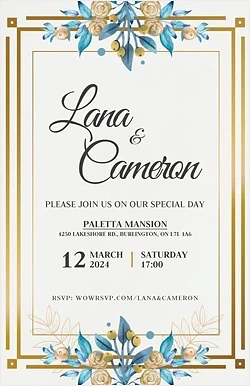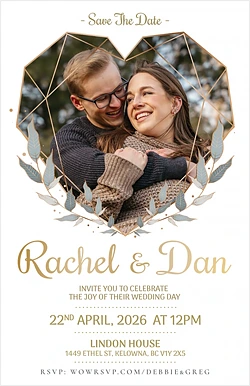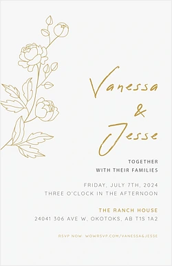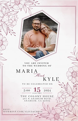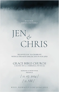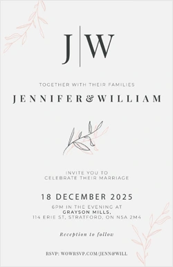 You may upload up to five photographs, and we will determine which one best complements your invitation card design. Jpg, jpeg or png format only.